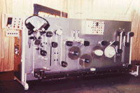 Produces liquid filtration tests (for in-home pregnancy tests, etc.) by coating material in test solutions, drying and slitting it to the required width and rewinding it.